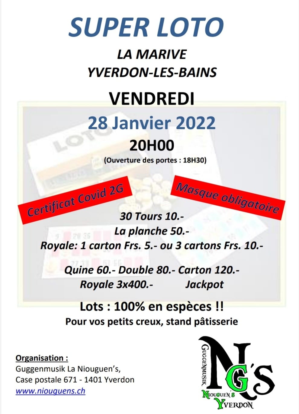 Après une pause forcée en 2020, notre soirée guggen est de retour en 2021! Nous vous attendons nombreux pour cette 2e édition qui aura lieu le 20 novembre prochain à la grande salle de Baulmes! CERTIFICAT COVID OBLIGATOIRE Entrée: 10frs dès 16 ans (accompagnement par un parent obligatoire pour les moins de 16 ans) […]