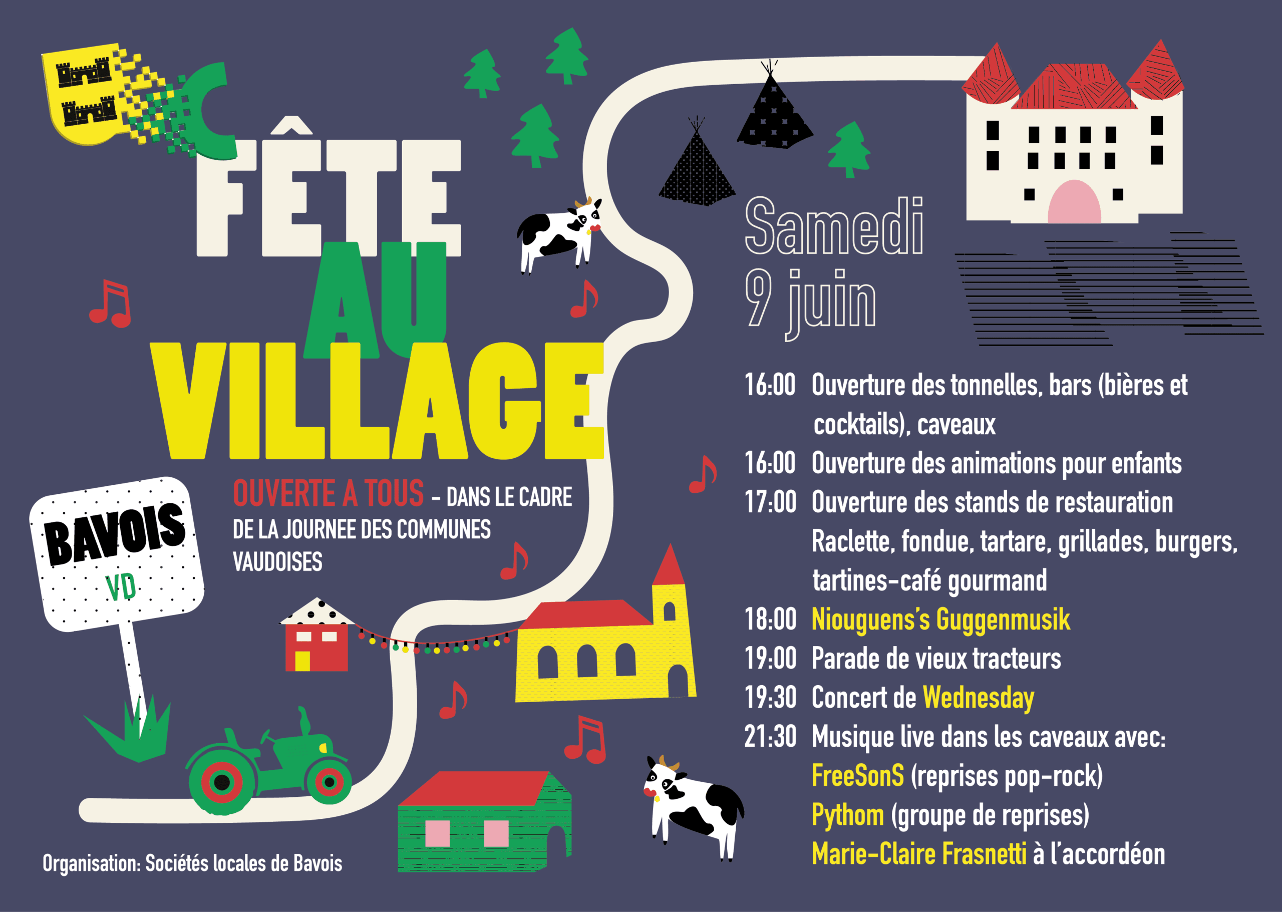 Bavois Bavois, SuisseLa Niouguen’s à l’avantage de participer aux festivités de la journée des communes vaudoises et se présentera durant une heure entre 18h00 et 19h00